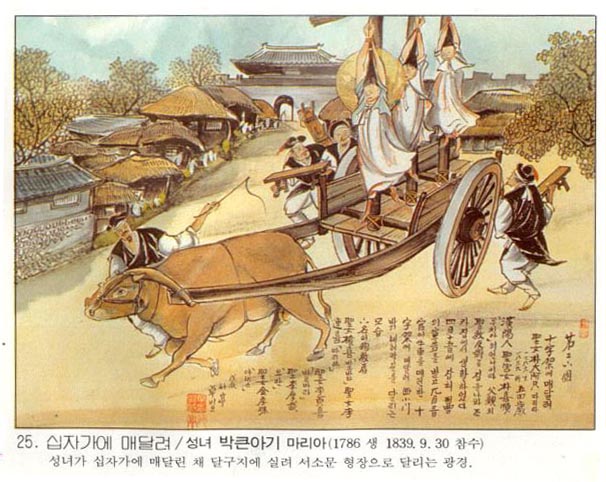 | Çѱ¹ õÁÖ±³È¸ÀÇ 103¸íÀÇ ¼ºÀÎÁß ÇÑ»ç¶÷.¹ÚÅ«¾Æ±â ¸¶¸®¾Æ´Â ¿Ü±³ÀÎ °¡Á¤¿¡¼ žÀ¸³ª ±Ã³àÀÎ µ¿»ý ¹ÚÈñ¼øÀÇ ±Ç¸éÀ¸·Î ÀÔ±³ÇÏ¿´´Ù. 1839³â 4¿ù 15ÀÏ µ¿»ý°ú ÇÔ²², ÇǽÅÇØ ÀÖ´ø Àü°æÇùÀÇ Áý¿¡¼ üÆ÷µÇ¾î Æ÷û°ú ÇüÁ¶¿¡¼ ȤÇü°ú °í¹®À» °ßµð¾î ³Â´Ù. µ¿»ý ¹ÚÈñ¼øÀÌ ¼ø±³ÇÑ Áö 100¿© ÀÏÀÌ Áö³ 9¿ù 3ÀÏ ´Ù¼¸ ¸íÀÇ ±³¿ì¿Í ÇÔ ...