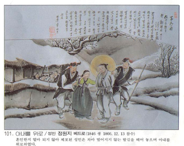| Çѱ¹ õÁÖ±³È¸ÀÇ 103¸íÀÇ ¼ºÀÎÁß ÇÑ»ç¶÷.µ¿Á¤ ¼ø±³ÀÚÀÎ Á¤Á¤Çý´Â Á¤¾àÁ¾(ïËå´ñ£)ÀÇ µþ·Î, ³× »ì ¶§ ¼¼·Ê¼º»ç¸¦ ¹Þ¾Ò´Ù. 1801³â ½ÅÀ¯¹ÚÇØ·Î Àü°¡Á·ÀÌ ÇÔ²² üÆ÷µÇ¾î, ¾Æ¹öÁö¿Í À̺¹ ¿Àºü Á¤Ã¶»ó(ïËôÉßÔ)Àº ¼ø±³ÇÏ¿´À¸³ª Á¤Á¤Çý´Â ¾î¸Ó´Ï À¯ üĥ¸®¾Æ, ¿Àºü Á¤ÇÏ»ó(ïËù¾ßÔ)°ú ÇÔ²² ¼®¹æµÇ¾ú´Ù. ±× µÚ ¸¶ÀçÀÇ »ïÃÌ Á¤¾à¿ë(ïËå´ ...
